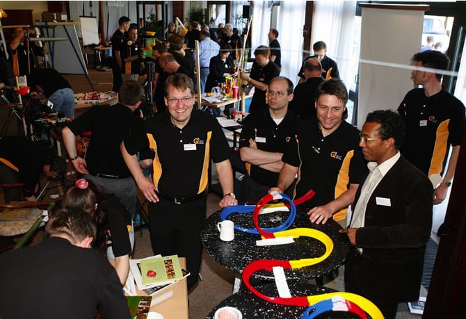Die Teilnehmer kommen dem Erfolgsrezept beim Teamevent Kettenreaktion XXXL relativ schnell auf die Spur: Kreative Lösungsfindung und Kommunikation im Team. Denn die verarbeiteten Inhalte hängen in der Kettenreaktion XXXL zusammen. “Schnittstellengestaltung” zwischen Menschen und Abschnitten der Kettenreaktion ist ein zentrales Element des Veranstaltungskonzeptes. So werden nicht nur Impulse weitergegeben, sondern auch Ideen generiert, ausgearbeitet und geteilt. Und ganz nebenbei kommen die Teilnehmer miteinander ins Gespräch – beste Vorraussetzungen für Networking und ungezwungene Kontaktpflege im weiteren Verlauf des Firmenevents oder der Abendveranstaltung.