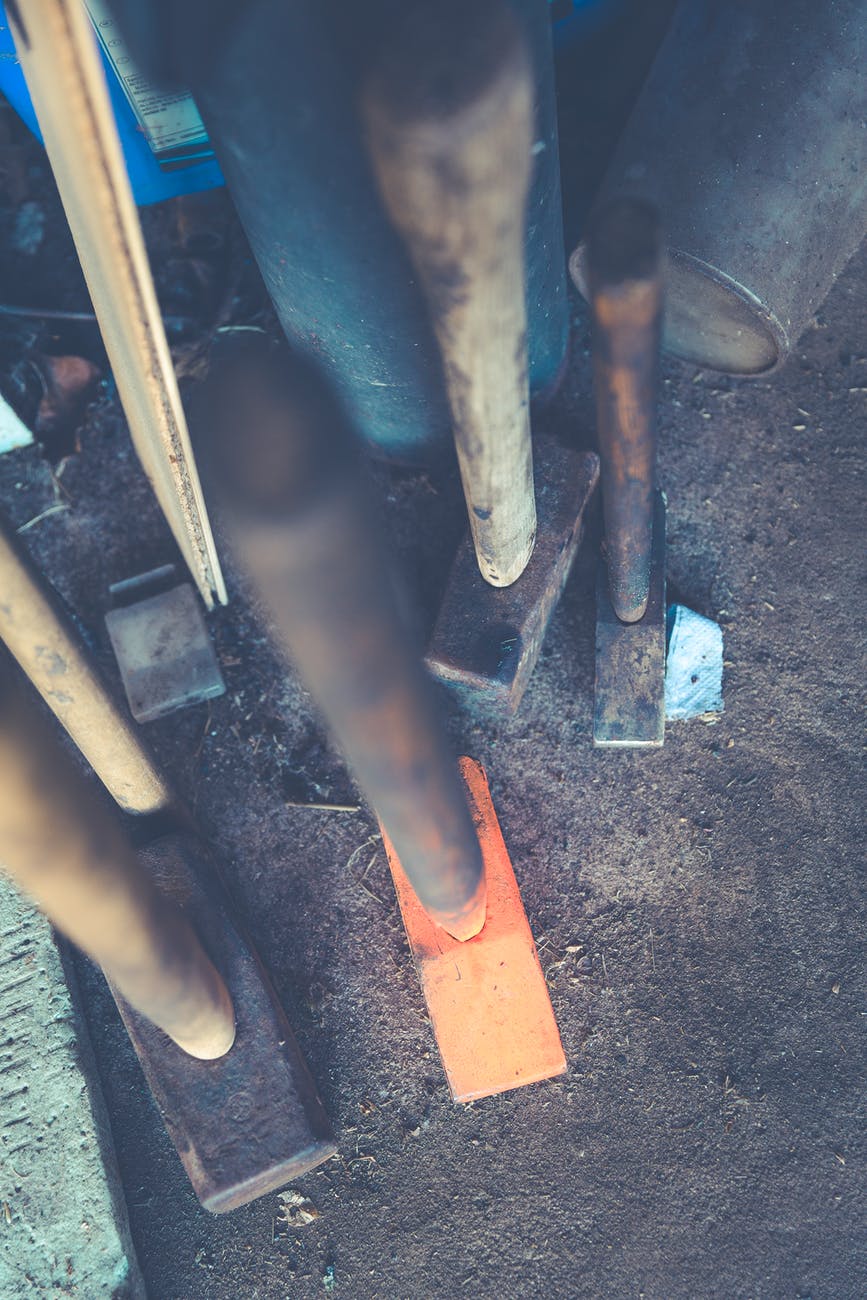high angle photo of horseshoes